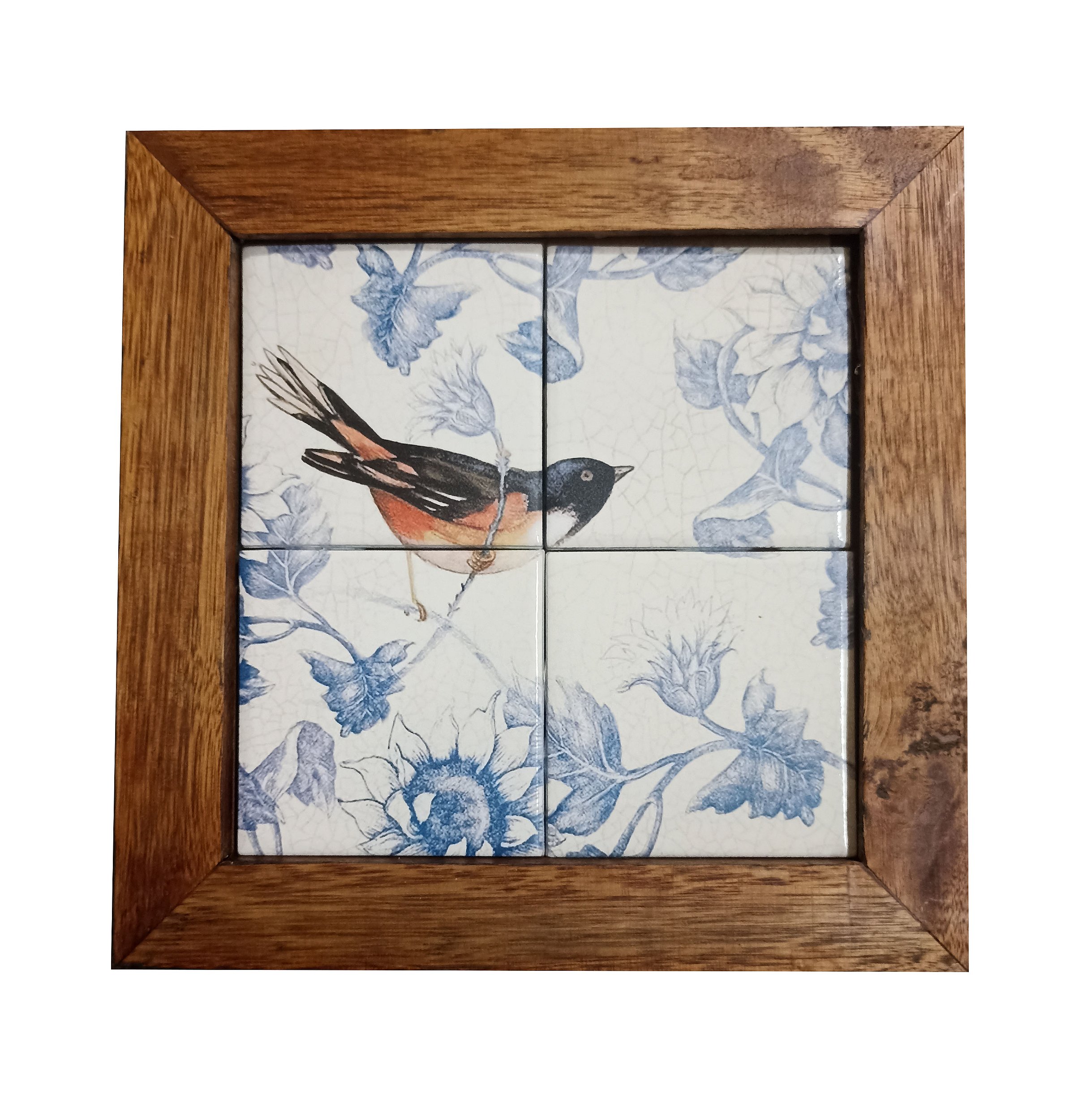 Belíssimo quadro de azulejo com impressão digital, esta peça é composta por 4 azulejos proporcionando um efeito único. Sua moldura feita em madeira maciça com acabamento em verniz natural entrega um visual rústico perfeito para ambientes como área de festas, sacada e espaço gourmet!