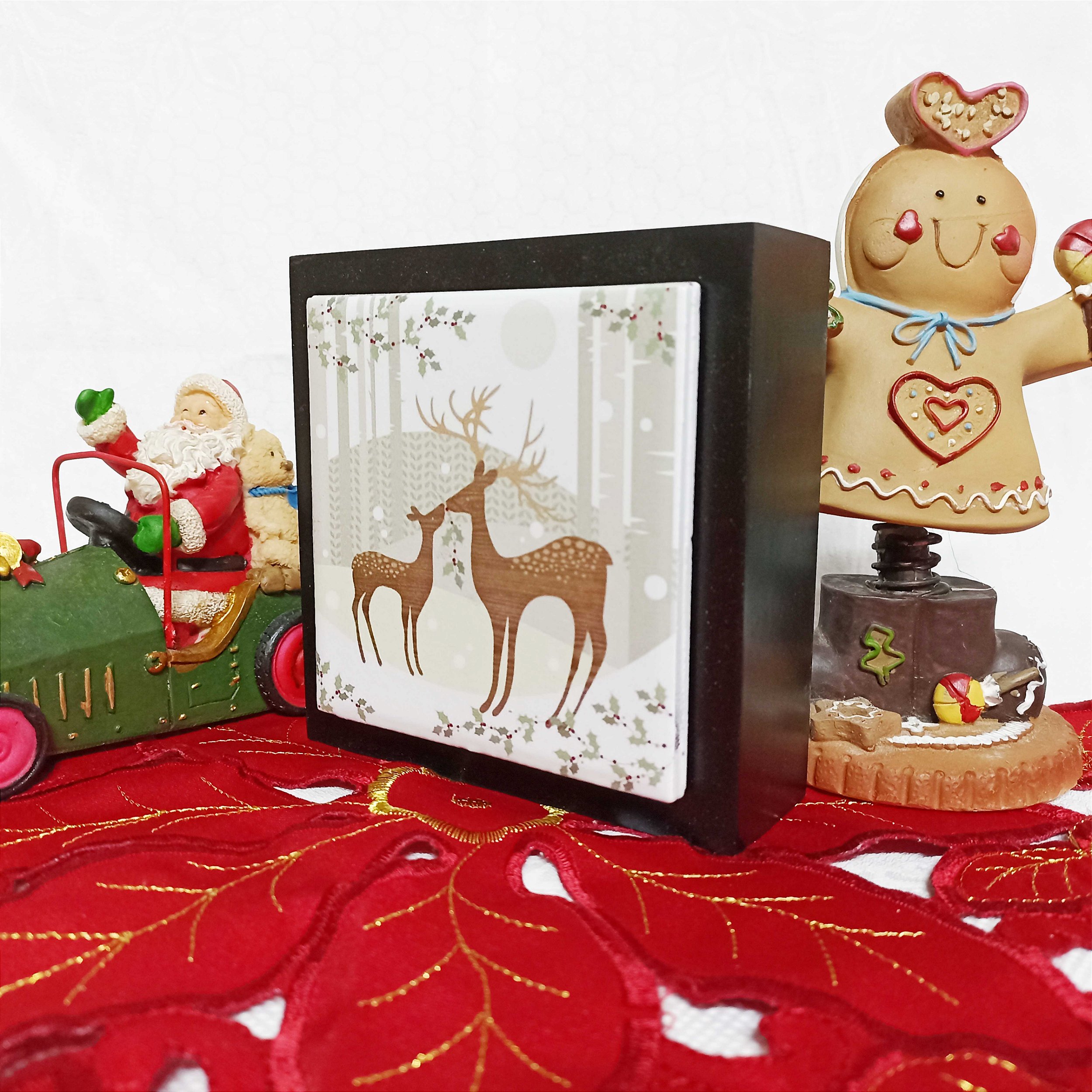 Seu design é moderno e se encaixa perfeitamente em mesas de centro, prateleiras, lareiras ou aparadores. O cubo decorativo é compacto e estável, feito para trazer o espírito do Natal para o seu espaço, sem ocupar muito lugar. É uma excelente adição à sua decoração natalina ou um presente charmoso.